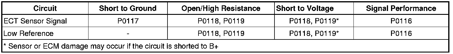 - Engine Coolant Temperature (ECT) Sensor Circuit Low Voltage