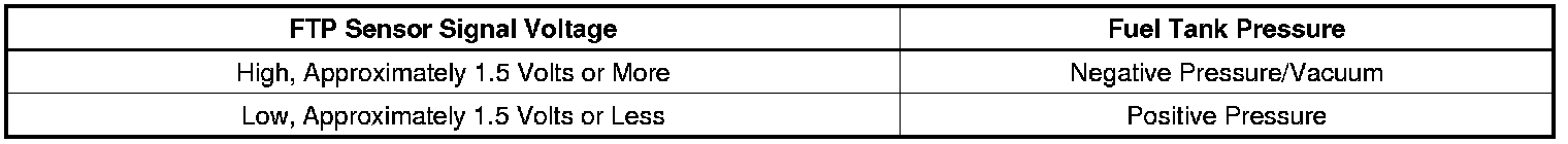 The ECM detects the FTP sensor signal voltage is greater than 4.85 volts for 4 seconds, or a cumulative of 30 seconds.