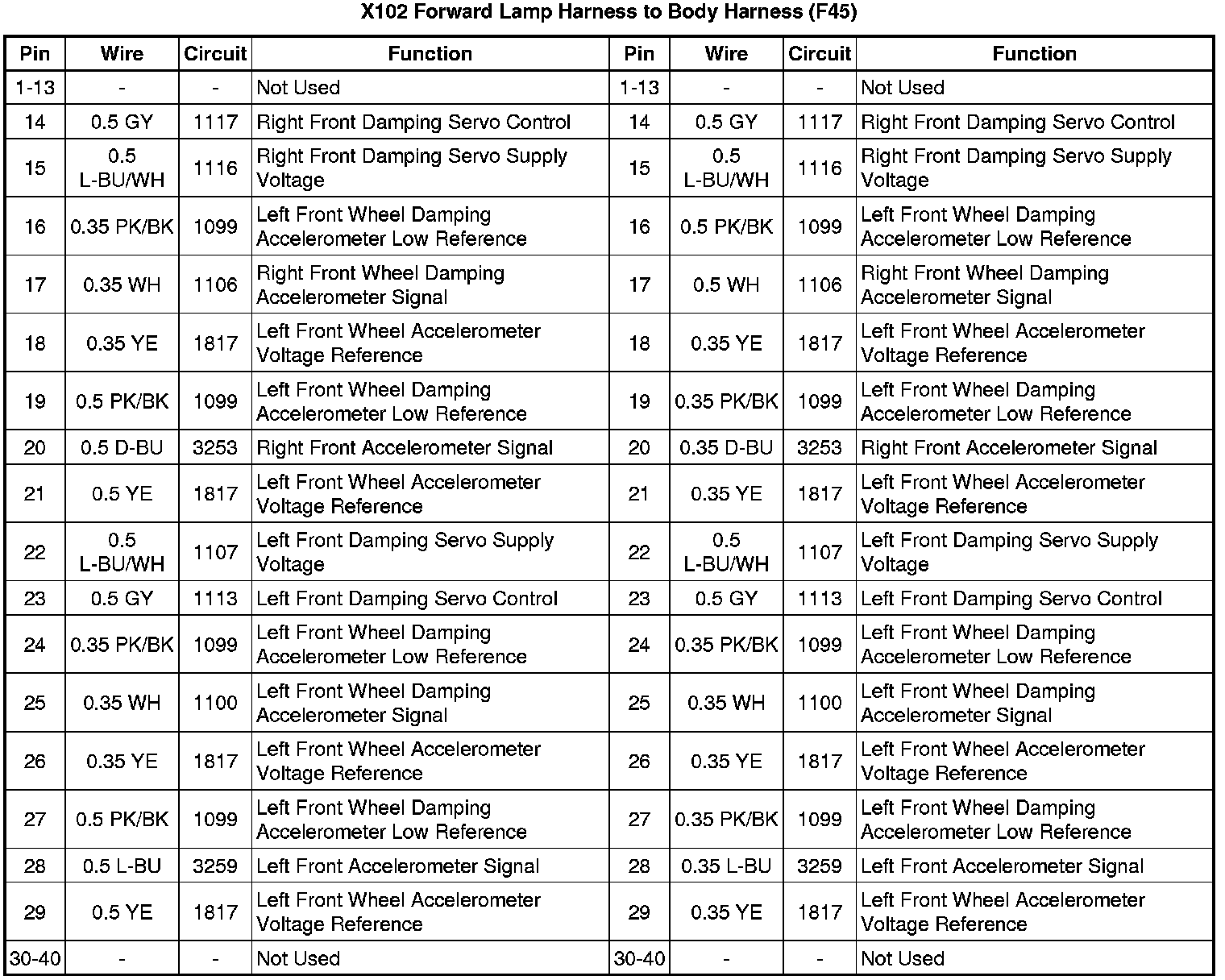 X102 Forward Lamp Harness to Body Harness (F45)