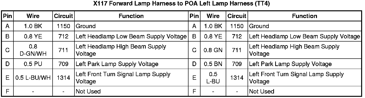X117 Forward Lamp Harness to POA Left Lamp Harness (TT4)