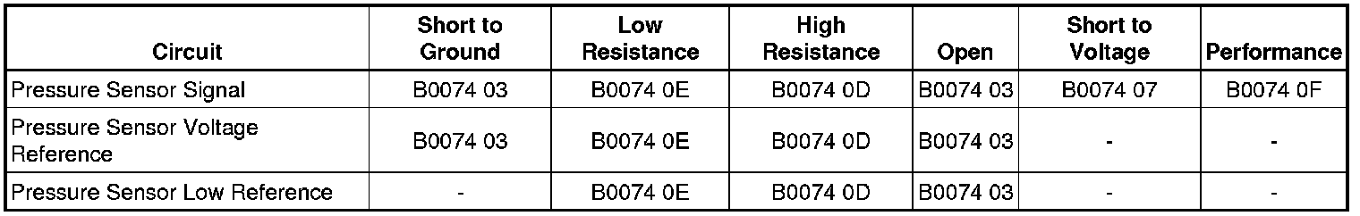 * The PPS detects the voltage at the pressure sensor signal is less than 0.5 volt or greater than 4.5 volts for 2 seconds.