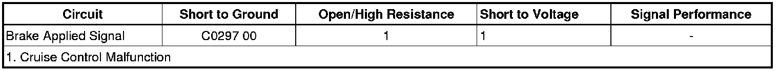 DTC C0297 00 will set when the BCM detects a short to ground in the brake applied signal circuit.
