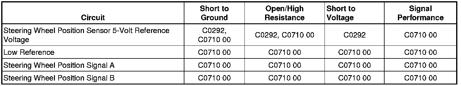 10. If all circuits test normal, replace the steering wheel position sensor. If the DTC resets replace the EBCM.