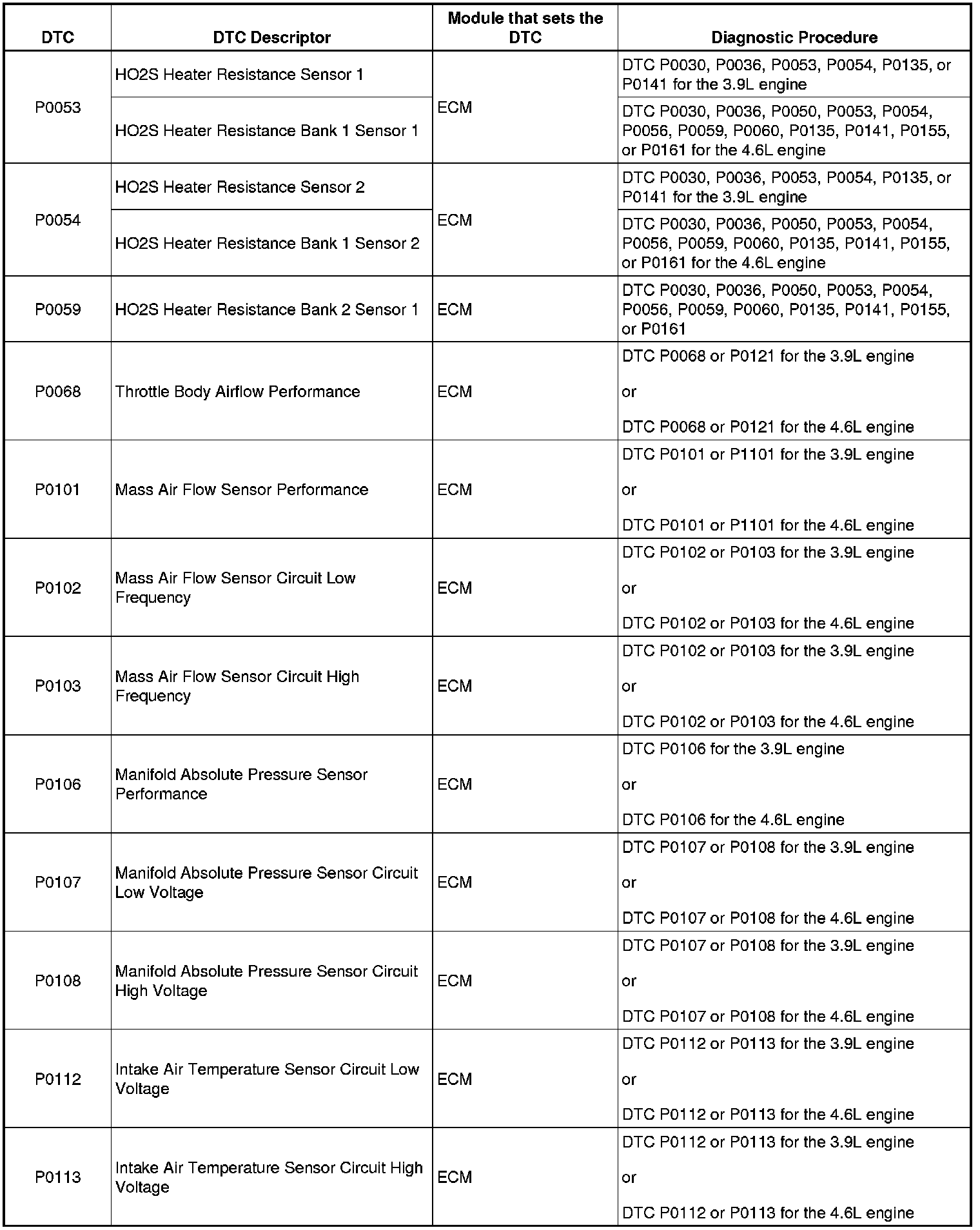 P0053 - P0113:
