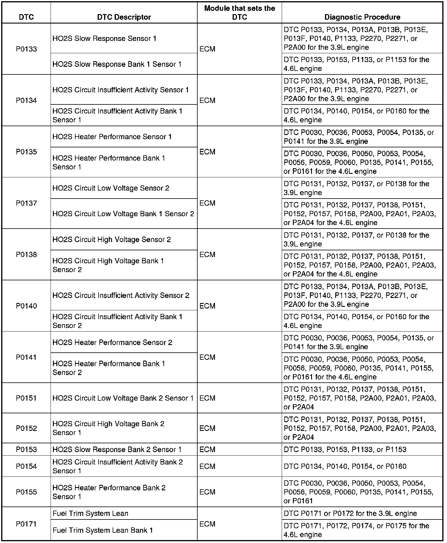 P0133 - P0171: