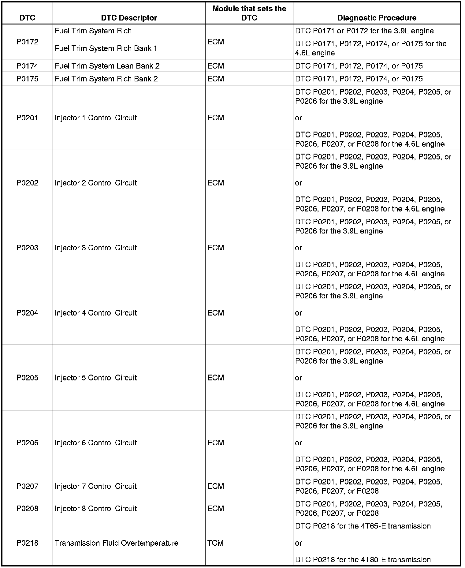P0172 - P0218:
