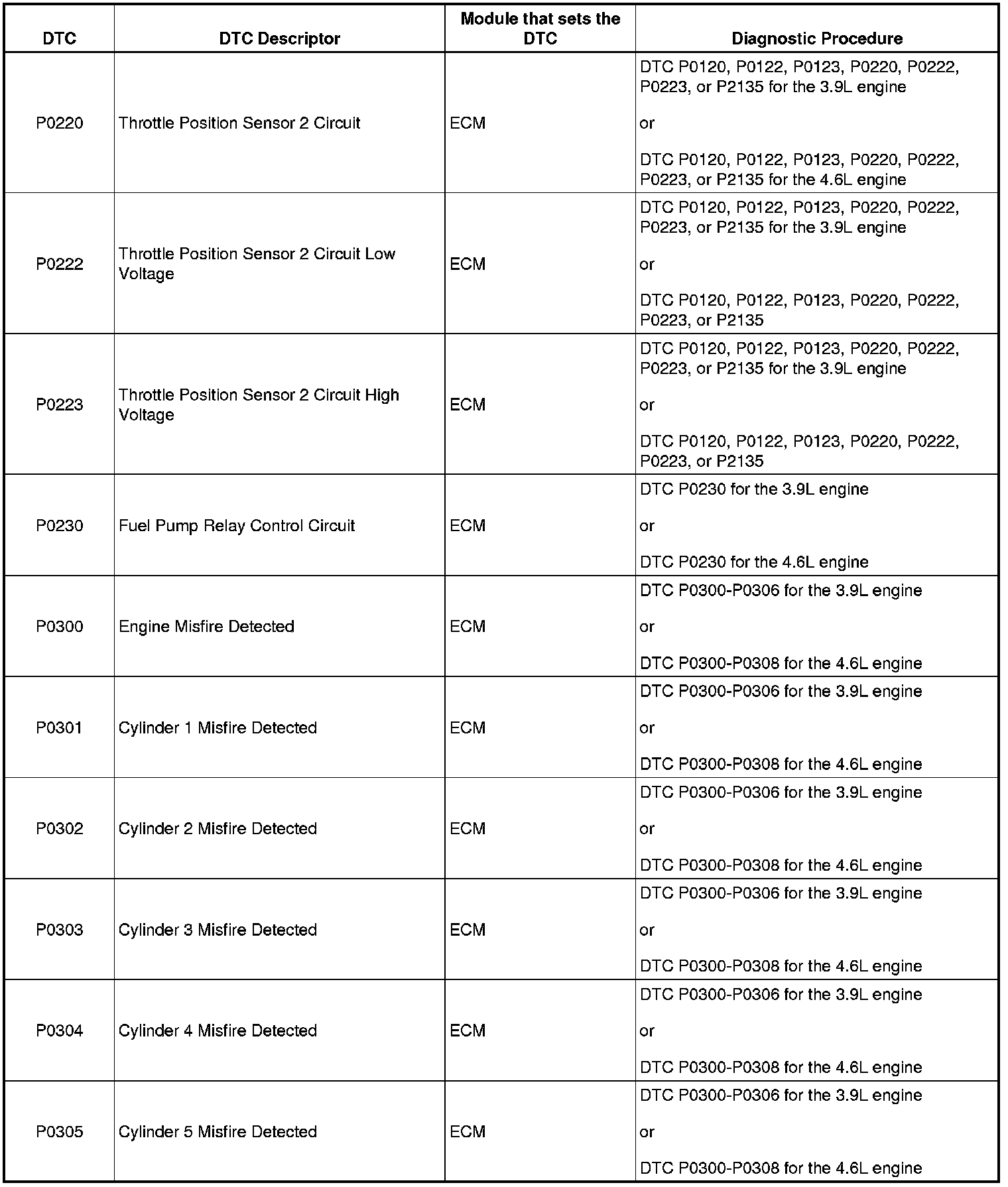 P0220 - P0305: