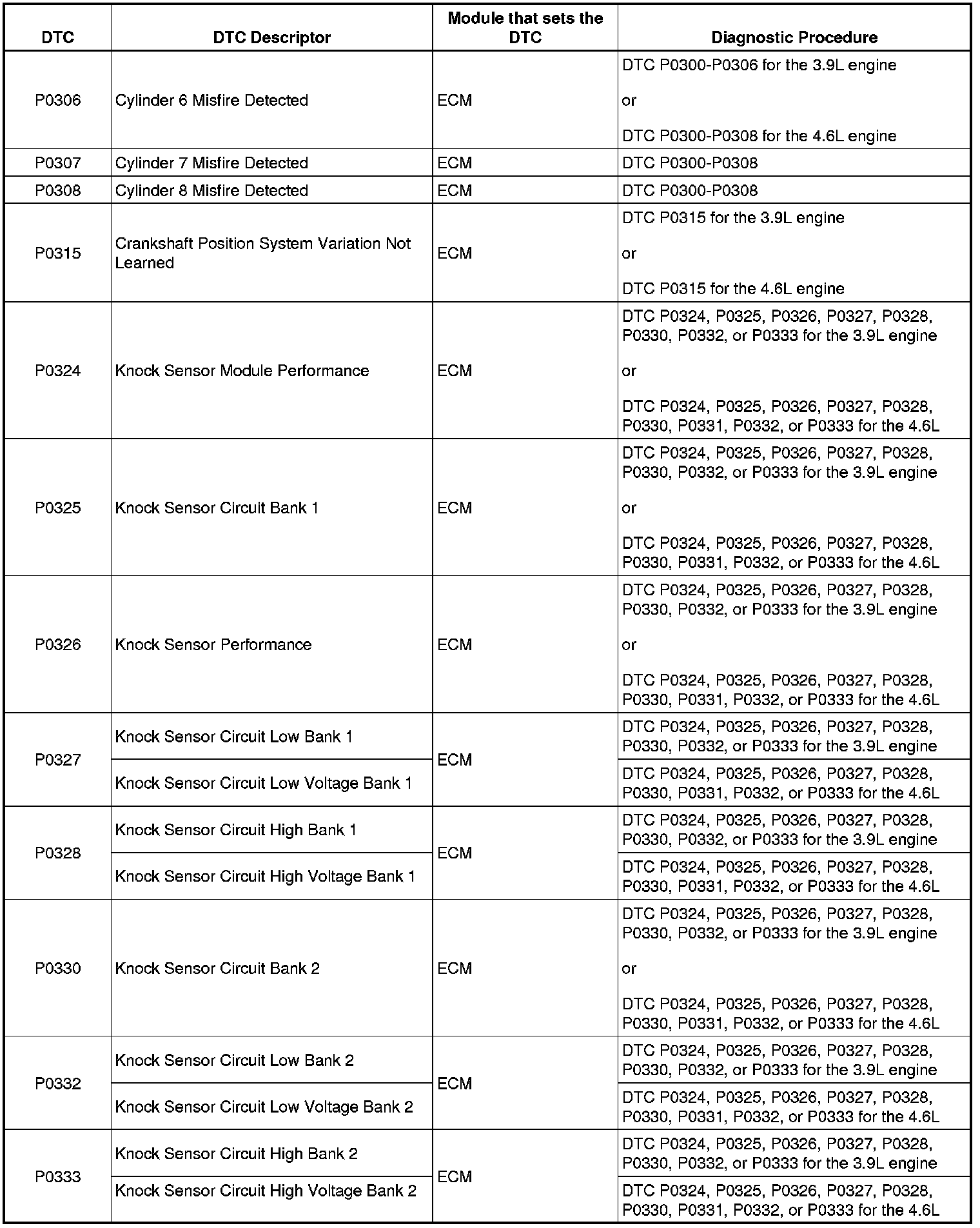 P0306 - P0333: