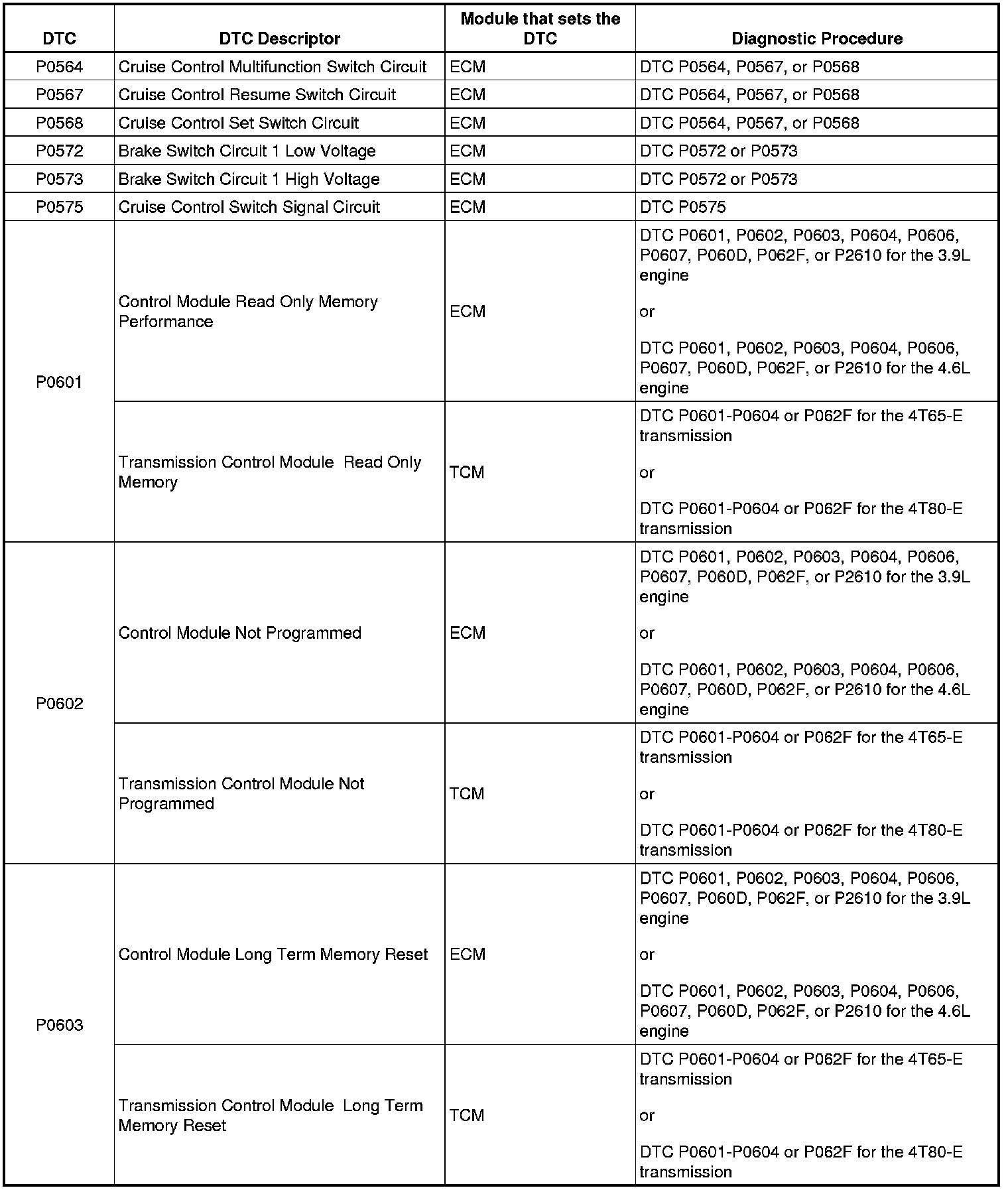 P0564 - P0603: