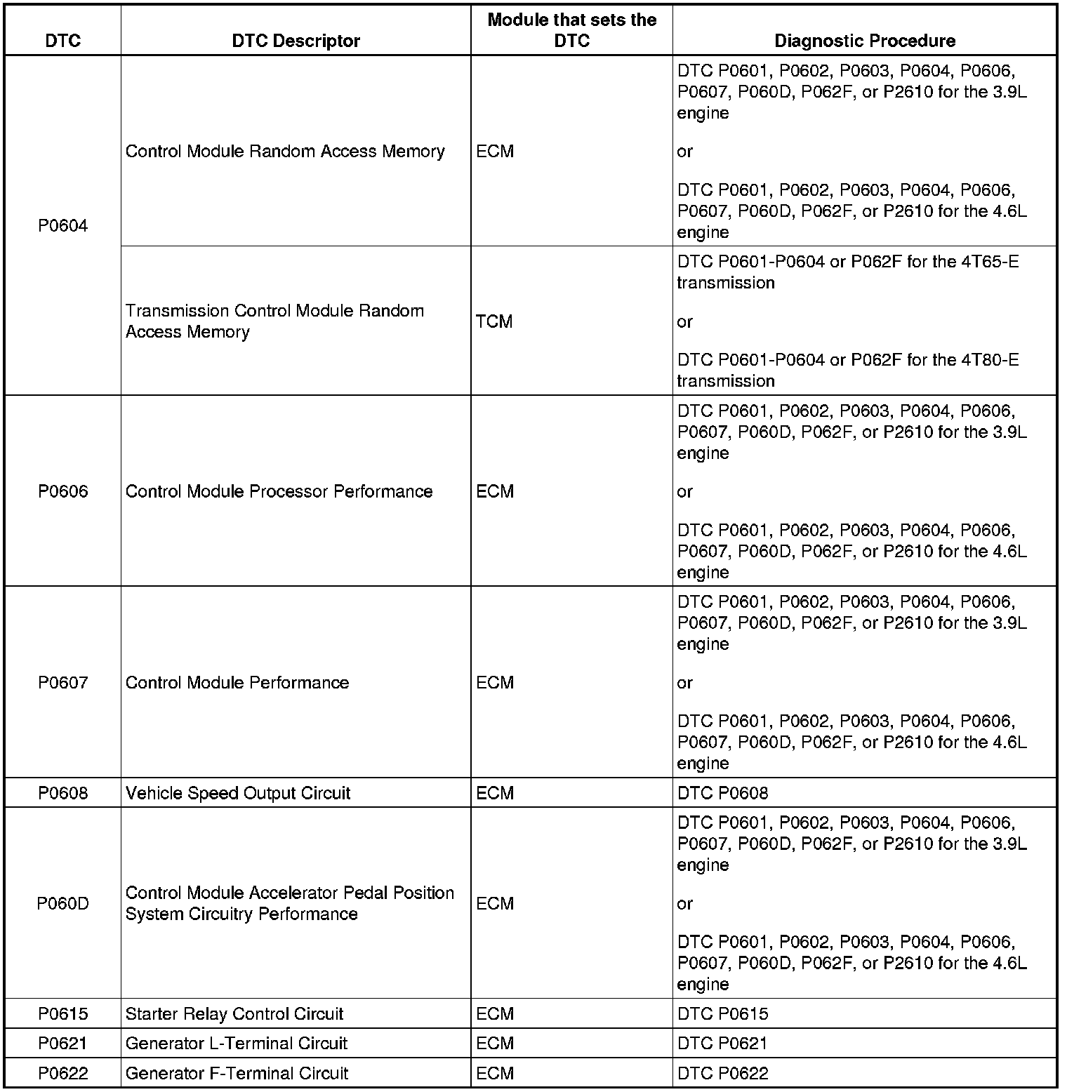P0604 - P0622: