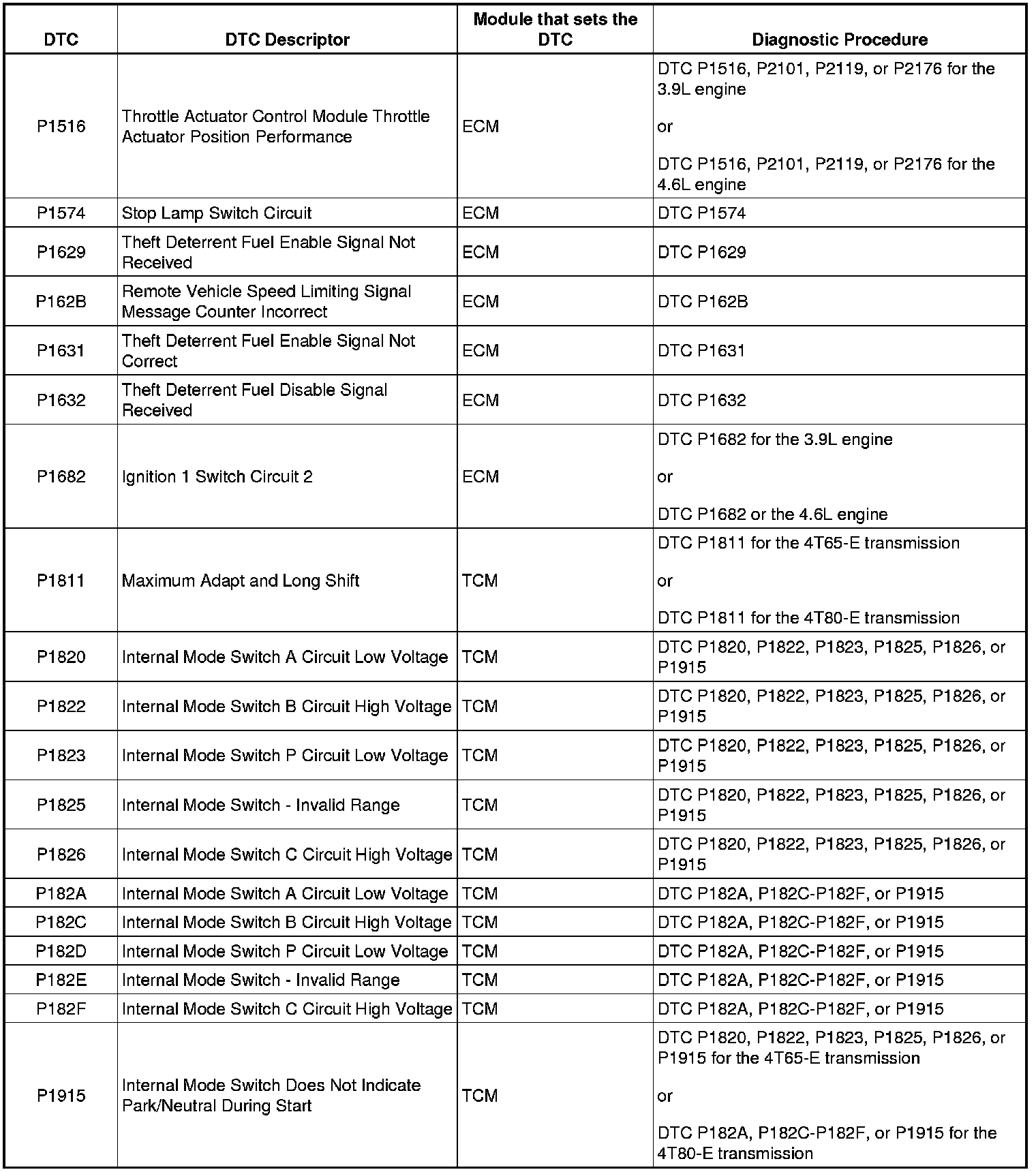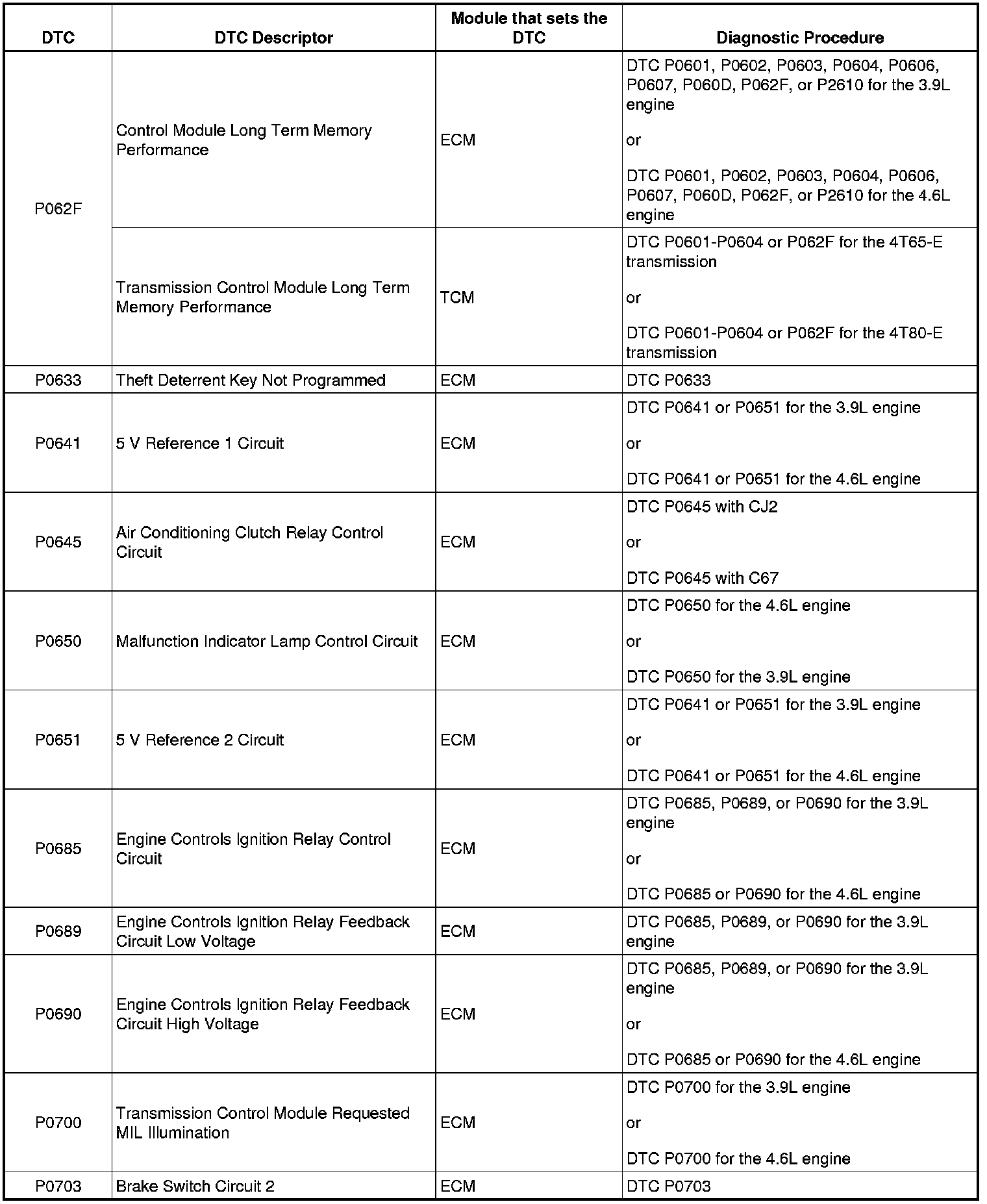 Diagnostic Trouble Code (DTC) List - VehicleThis master DTC list includes all applicable DTCs in alphanumeric order with descriptors.