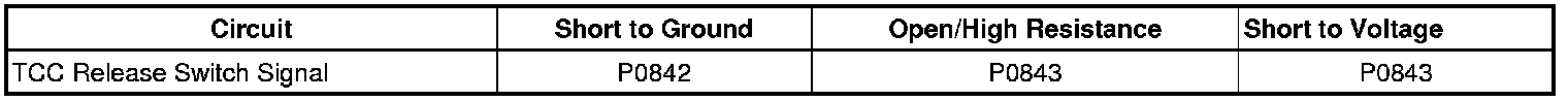 * DTC P0842 detects low voltage, a CLOSED TCC release switch, indicating the TCC is applied when the PCM is commanding the TCC off and TCC slip shows the TCC is OFF.