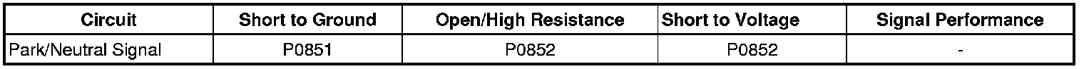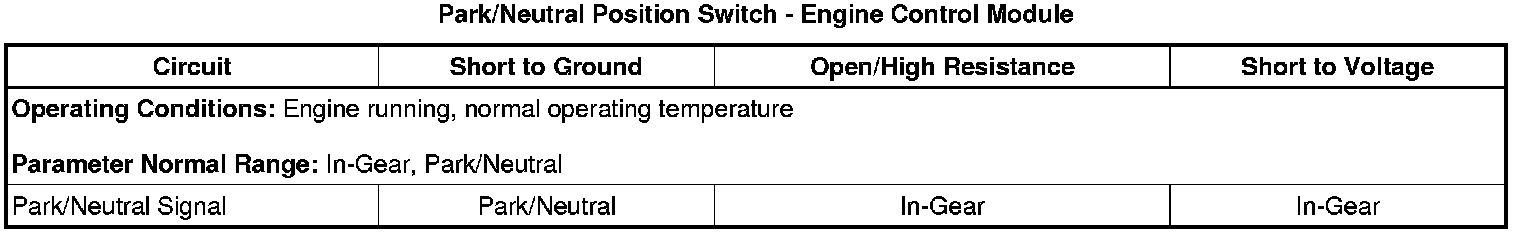 * The ECM detects Park/Neutral, the Park/Neutral switch signal equals 0 volts, Low, when the IMS reports a Drive range for 3 seconds.