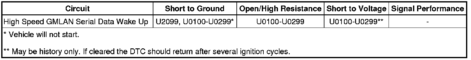 * Short to ground will also set multiple history no communication codes for GMLAN high speed modules.