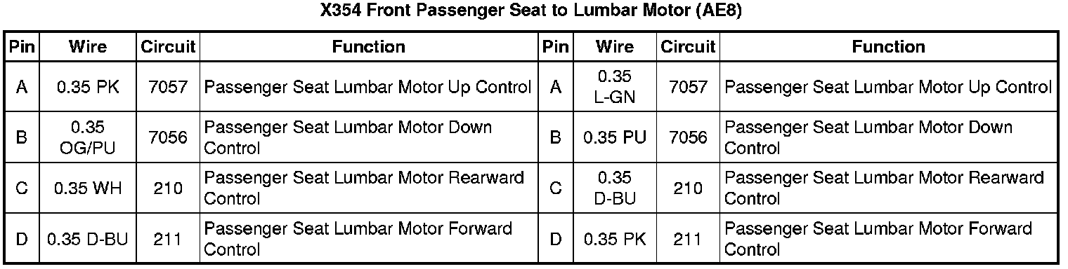 X354 Front Passenger Seat to Lumbar Motor (AE8)