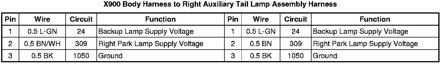 X900 Body Harness to Right Auxiliary Tail Lamp Assembly Harness
