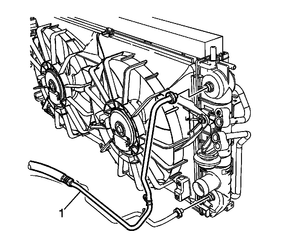 8. Remove the radiator outlet hose (1) from the radiator.