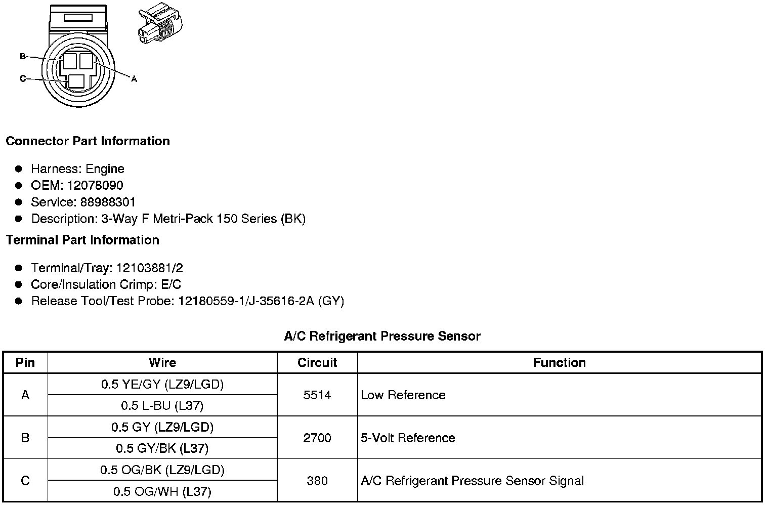 Refrigerant Pressure Sensor / Switch: Diagrams
