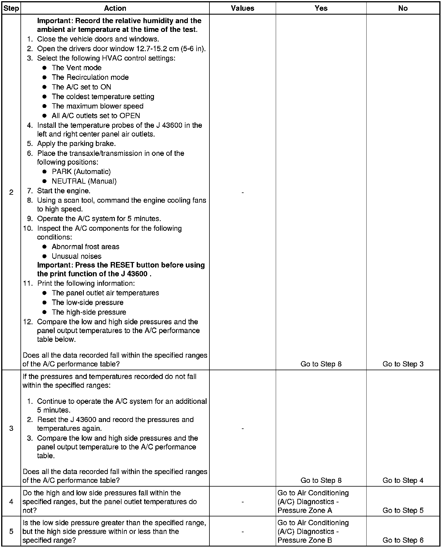 1. This step determines if the A/C system has at least the minimum refrigerant charge required to operate the system without damage.