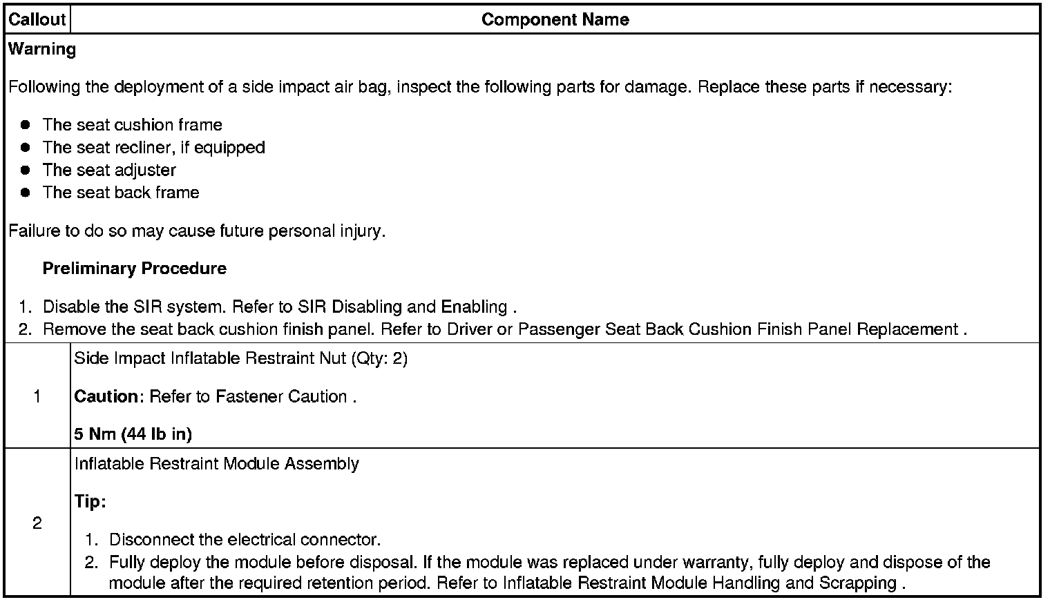 Driver or Passenger Seat Side Inflatable Restraint Module Replacement