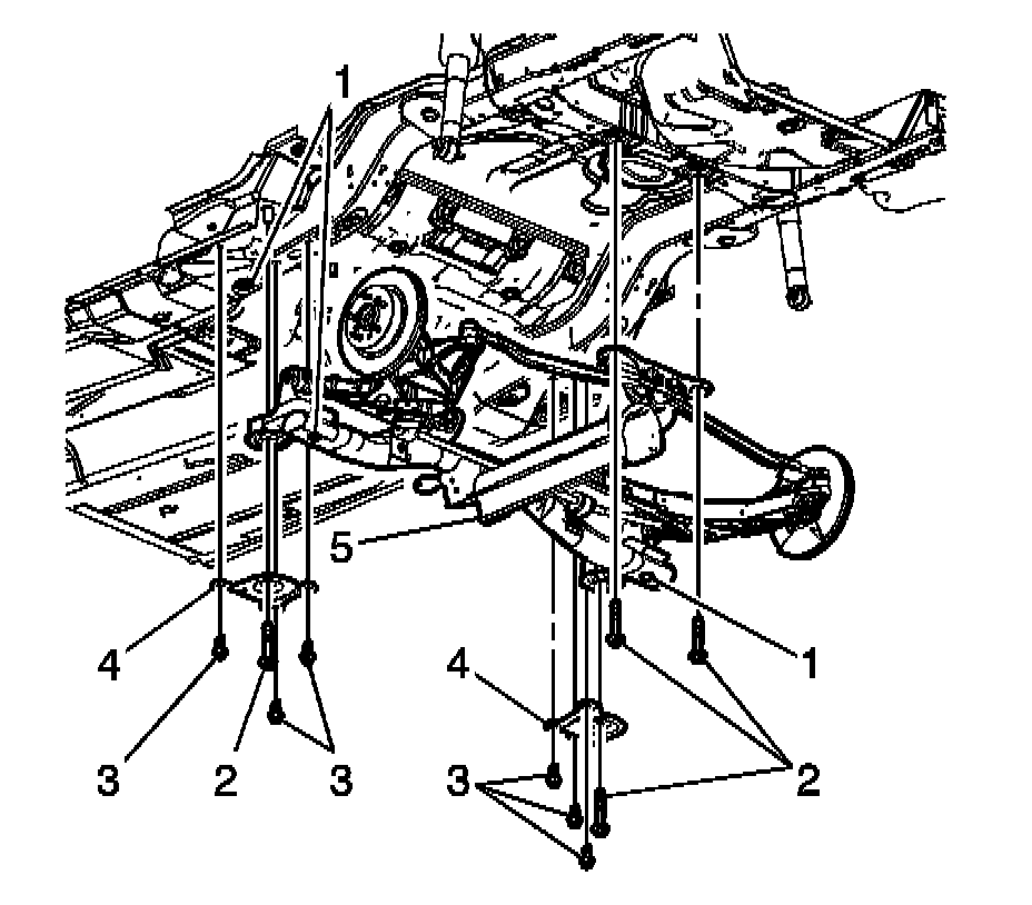 8.Remove the brake calipers and support calipers from vehicle underbody. Refer to Rear Brake Caliper Replacement .