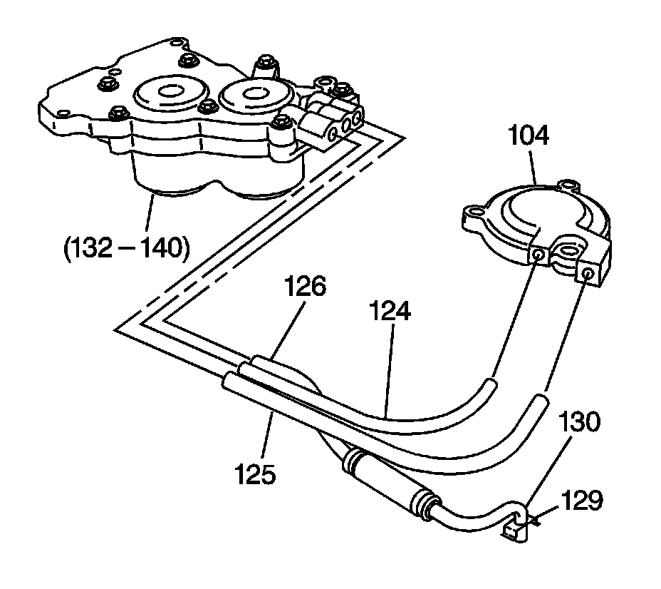 3. Inspect the servo and lube oil pipe components (124-130) and the 2-1 manual band servo cover (104) for the following conditions: