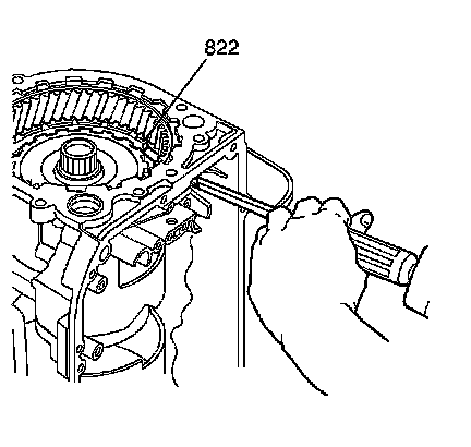 1. Rotate the forward and coast clutch support (822) counterclockwise against the spline. Do this by tapping on the support in a counterclockwise direction against the splines.