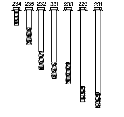 5. Hand start all of the bolts (229, 231, 232, 233, 234, 235, 331).