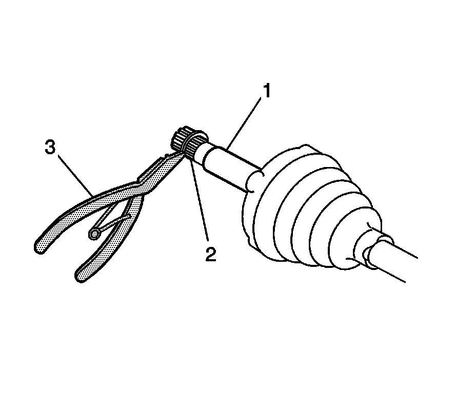 Caution: Do not cut through the wheel drive shaft inboard or outboard boot during service. Cutting through the boot may damage the sealing surface of the housing and the tripot or the constant velocity joint bushing. Damage to the sealing surface may lead to water and dirt intrusion and premature wear of the constant velocity joint.
