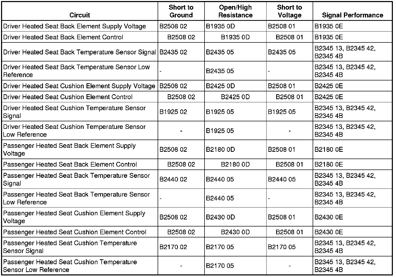 - Seat Heater Relay Circuit Short to Battery