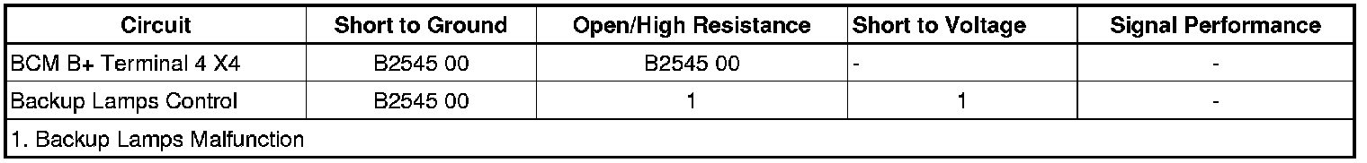 When DTC B2545 00 is present, the backup lamps will not operate.