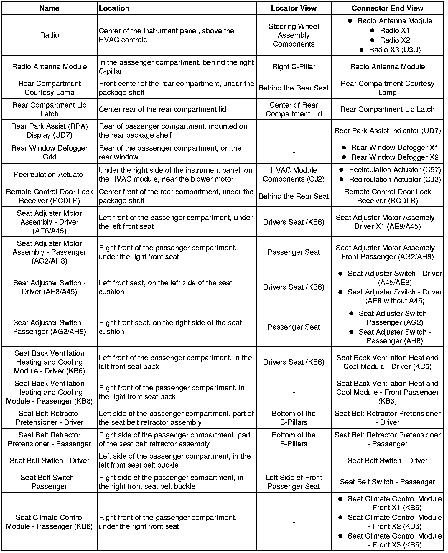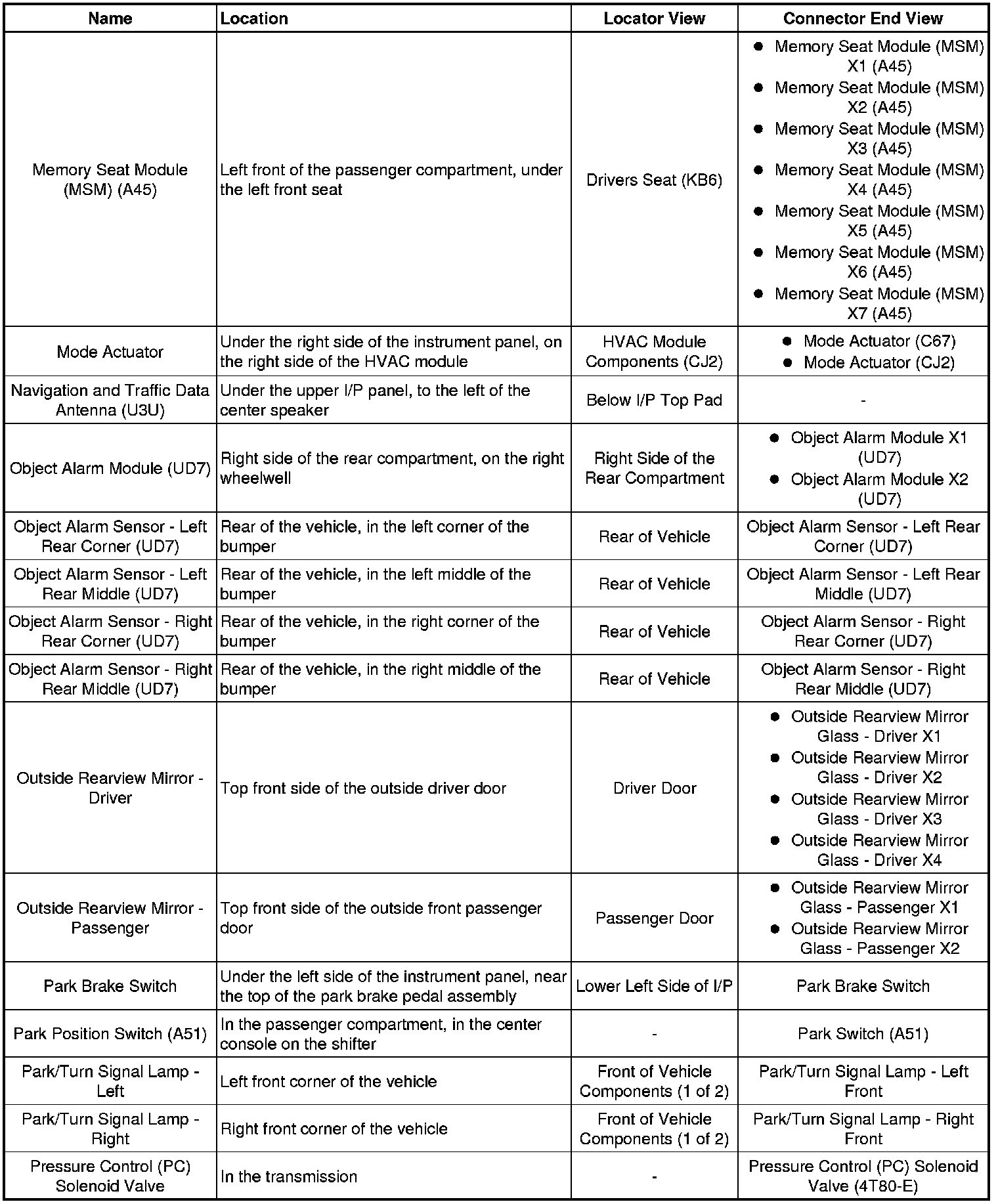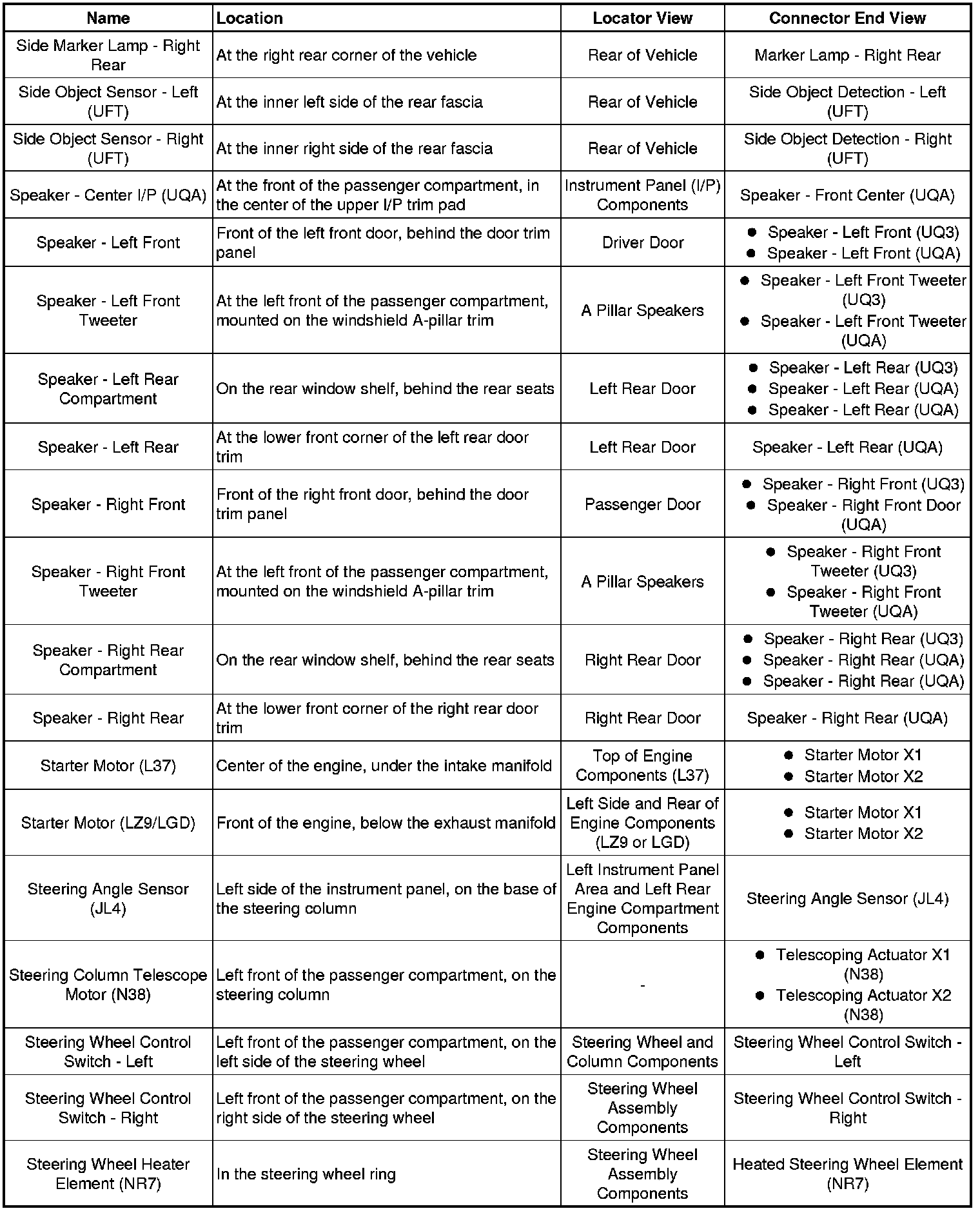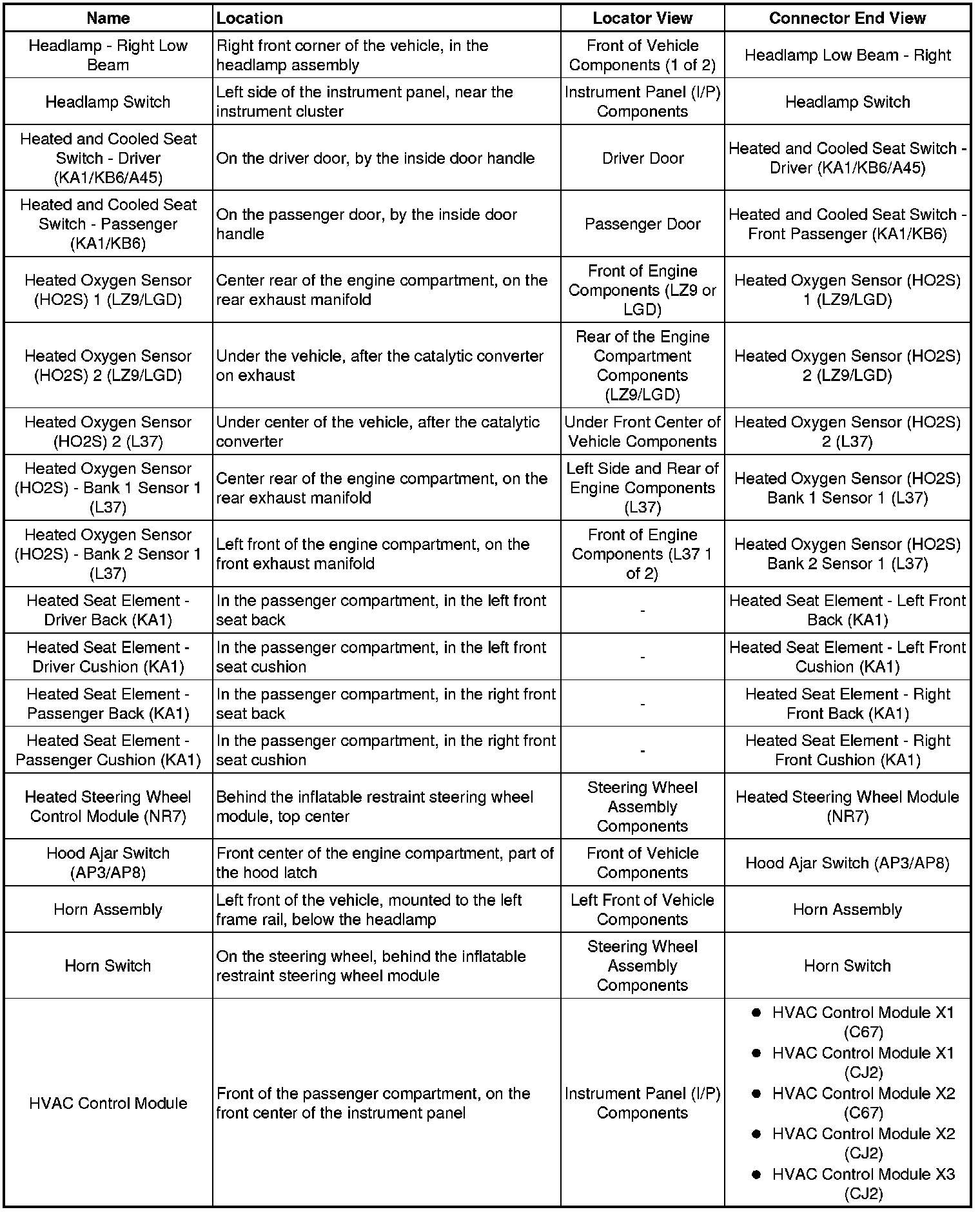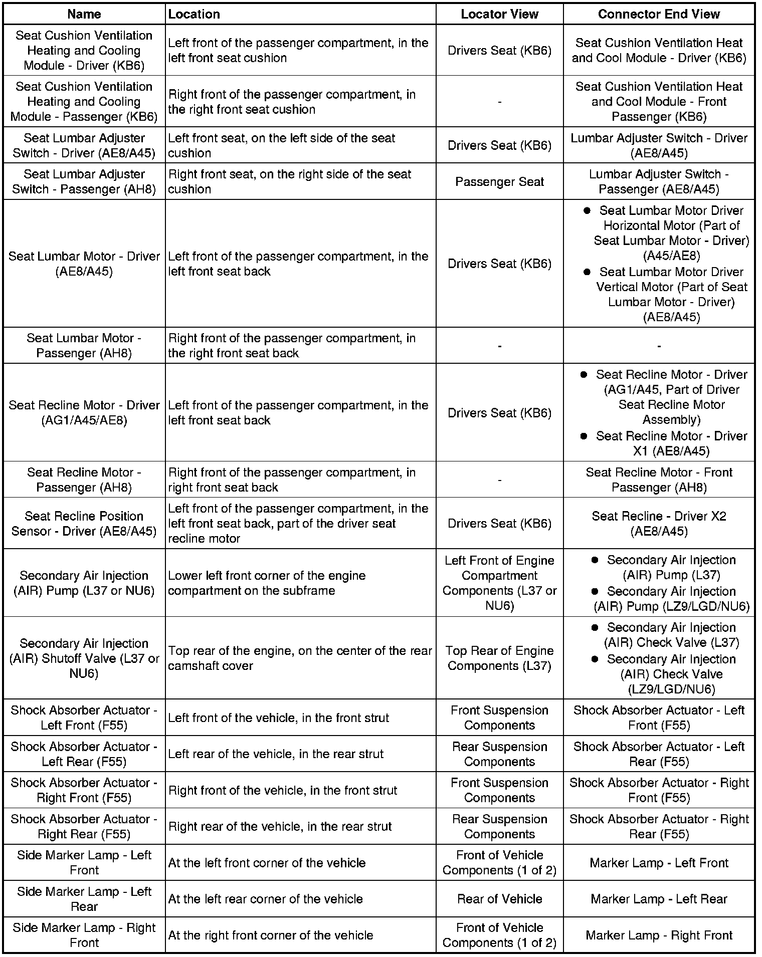 Master Electrical Component List