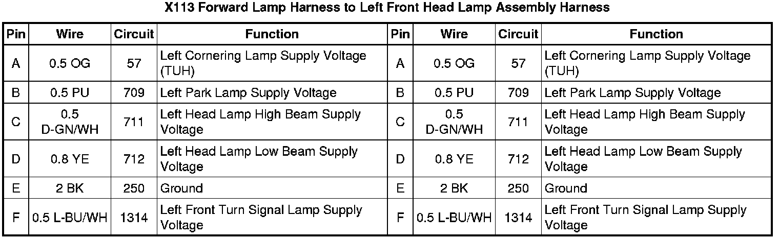 X113 Forward Lamp Harness to Left Front Head Lamp Assembly Harness