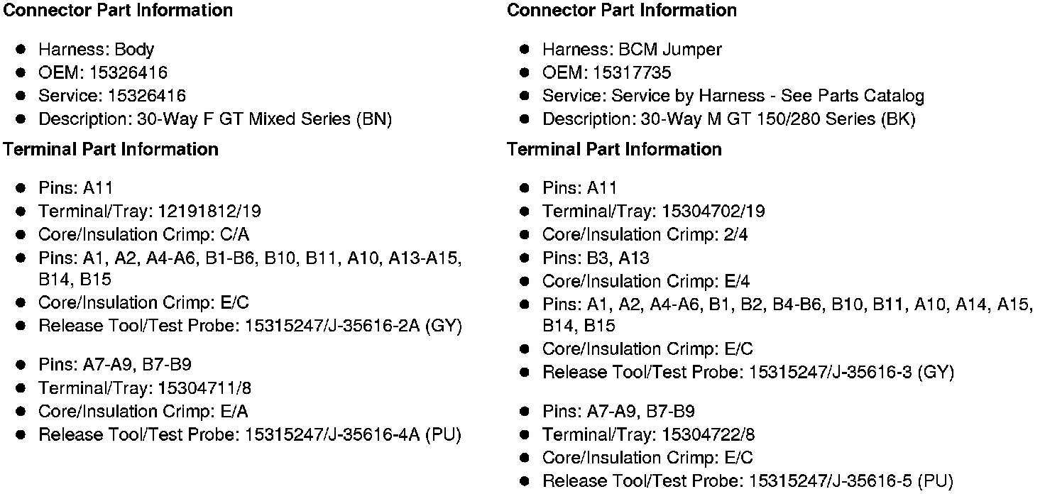 X325 Body Harness to Body Control Module Harness