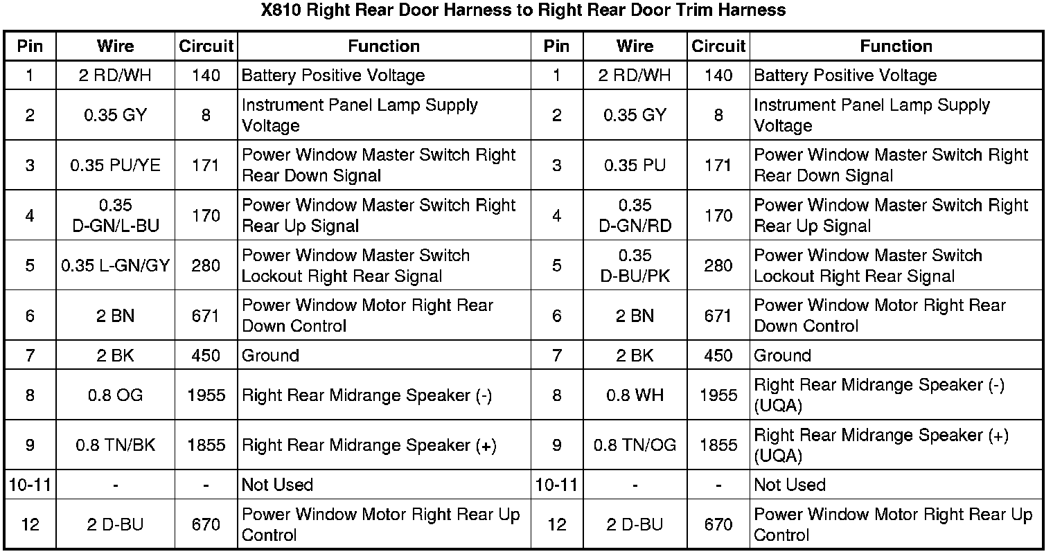 X810 Right Rear Door Harness to Right Rear Door Trim Harness