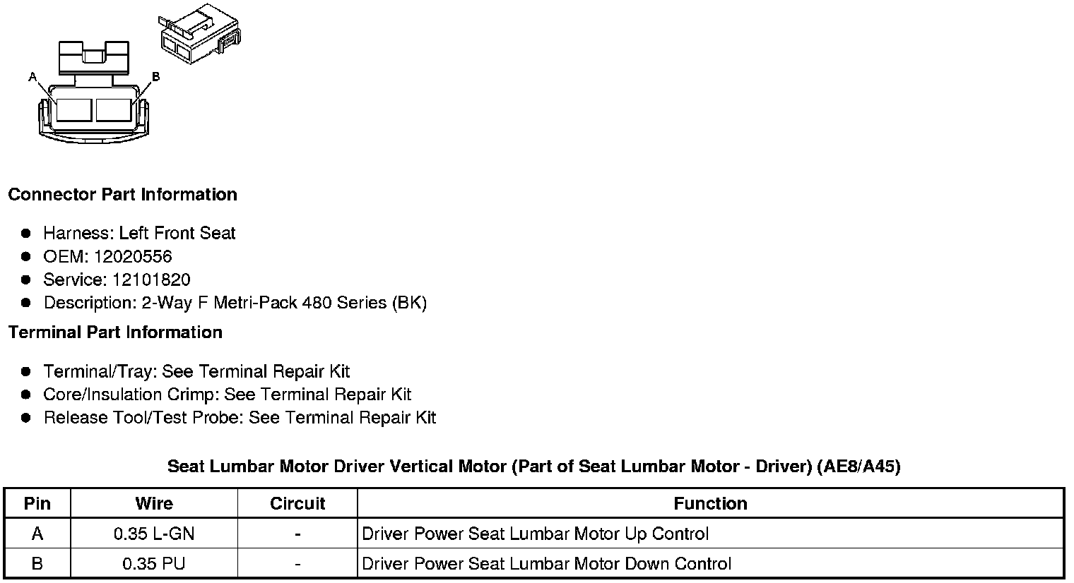 Seat Lumbar Motor Driver Vertical Motor (Part of Seat Lumbar Motor - Driver) (AE8/A45)