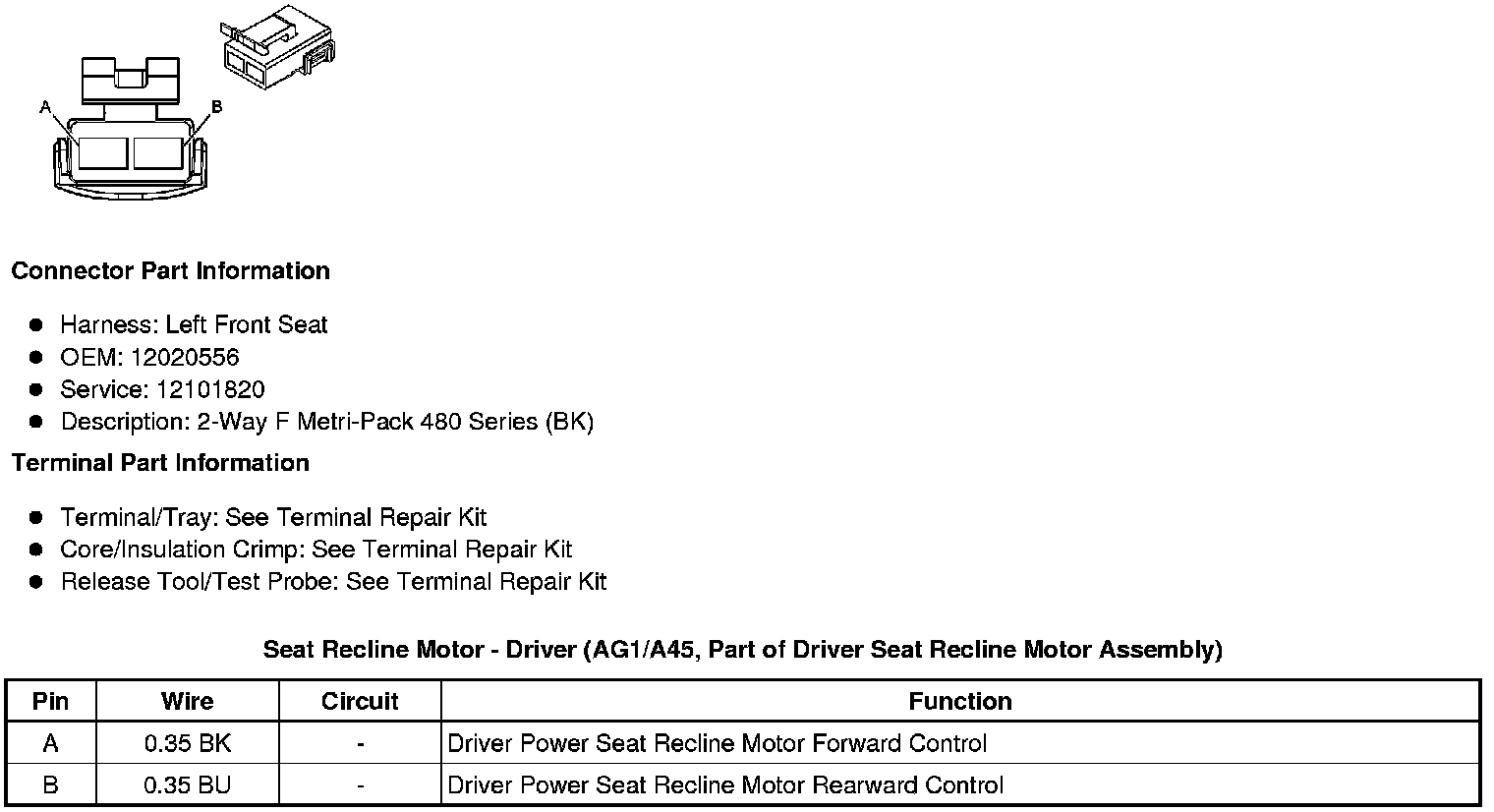 Seat Recline Motor - Driver (AG1/A45, Part of Driver Seat Recline Motor Assembly)