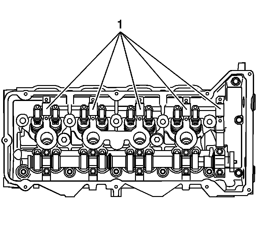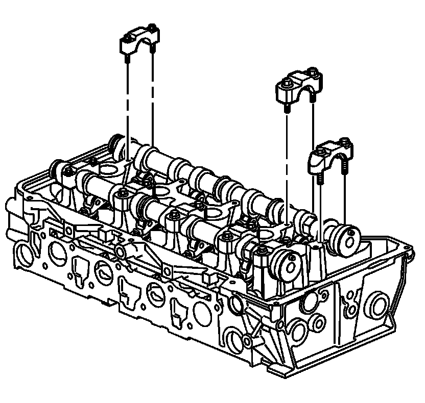 Note: Ensure each valve rocker arm is properly aligned to the valve tip, the valve lifter and the camshaft lobe. Inspect the alignment prior to and after the camshaft caps are tightened to specifications.