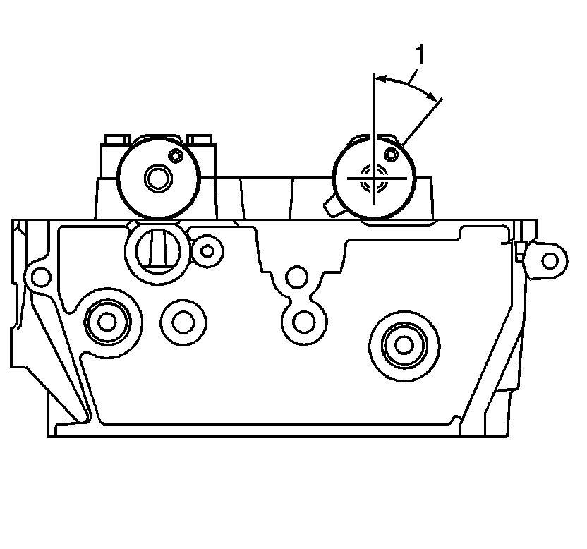 4. Place the camshaft in the camshaft carriers with the camshaft sprocket drive pins near the 45-60 degree location (1), clockwise from the top of their rotation and the camshaft lobes in a neutral position. The camshafts can be identified by a stamping near the rear journal. For example: L-EXH is defined as left bank exhaust.