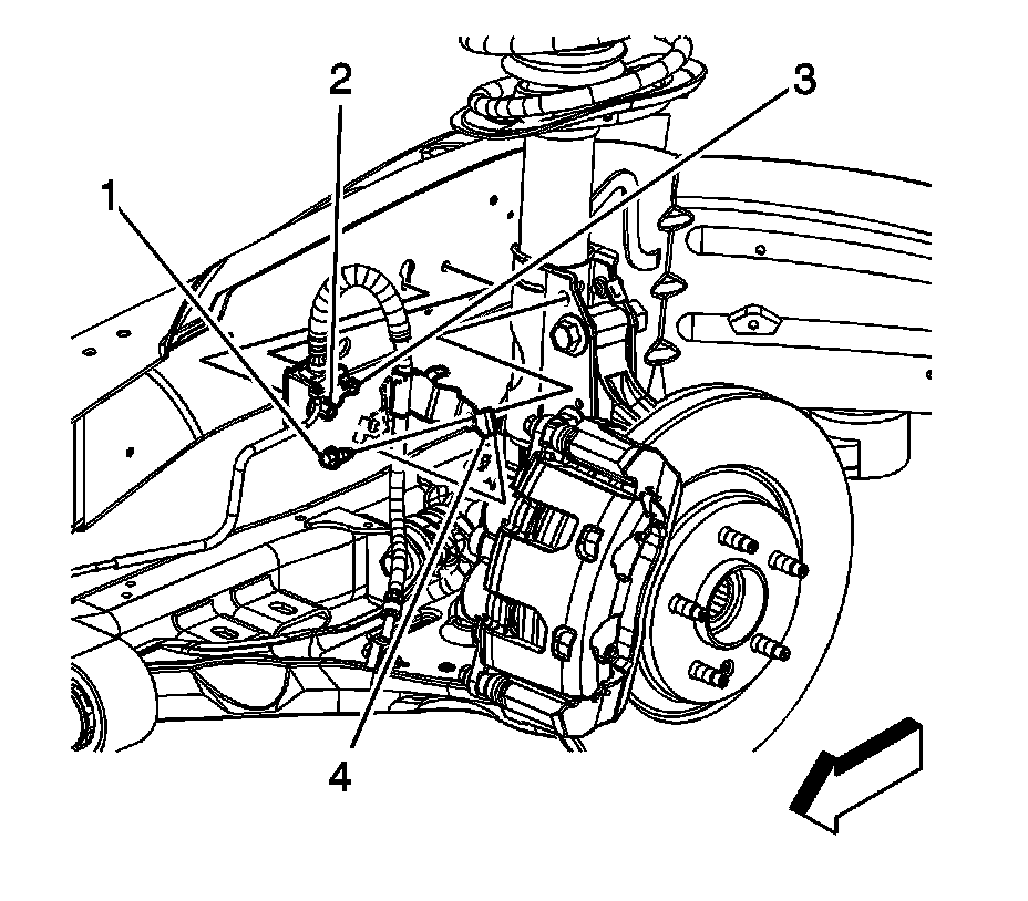110. Install the front brake pipe bracket (4) to the body frame rail.