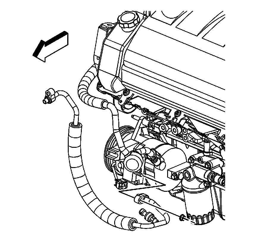 101. Unsecure the A/C compressor discharge hose from the engine.
