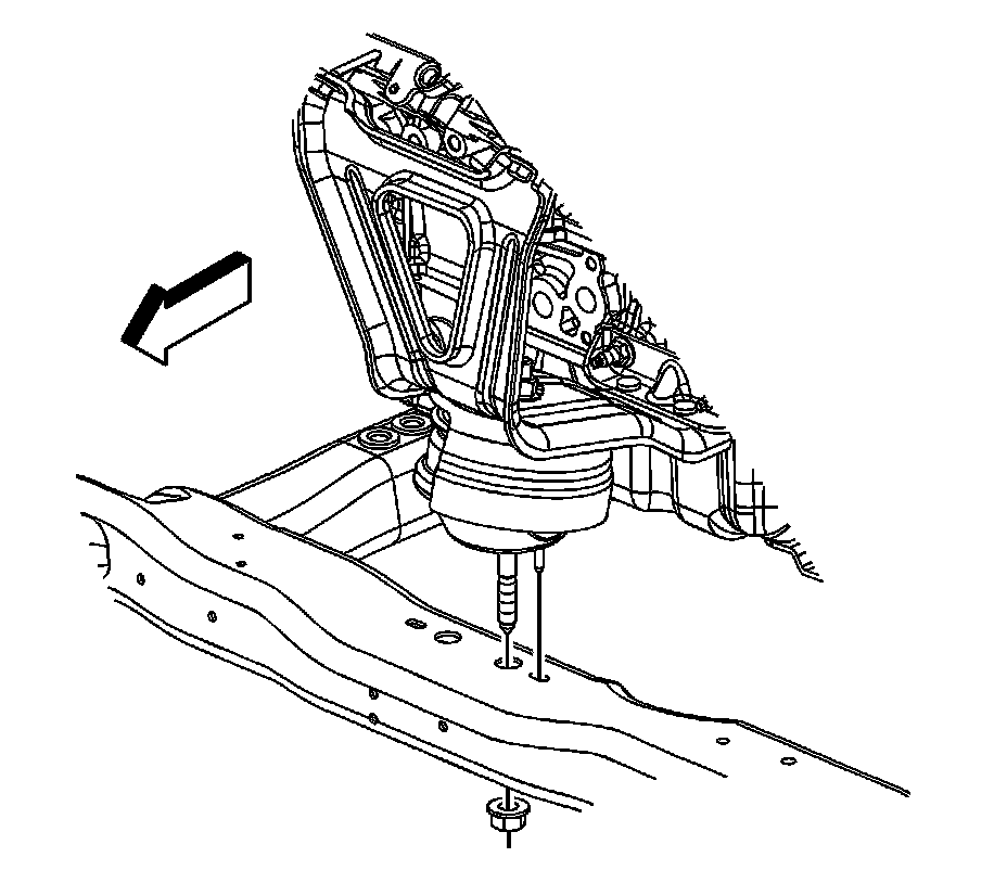 15. Tighten the front engine mount bracket nut with the transaxle brace behind it.