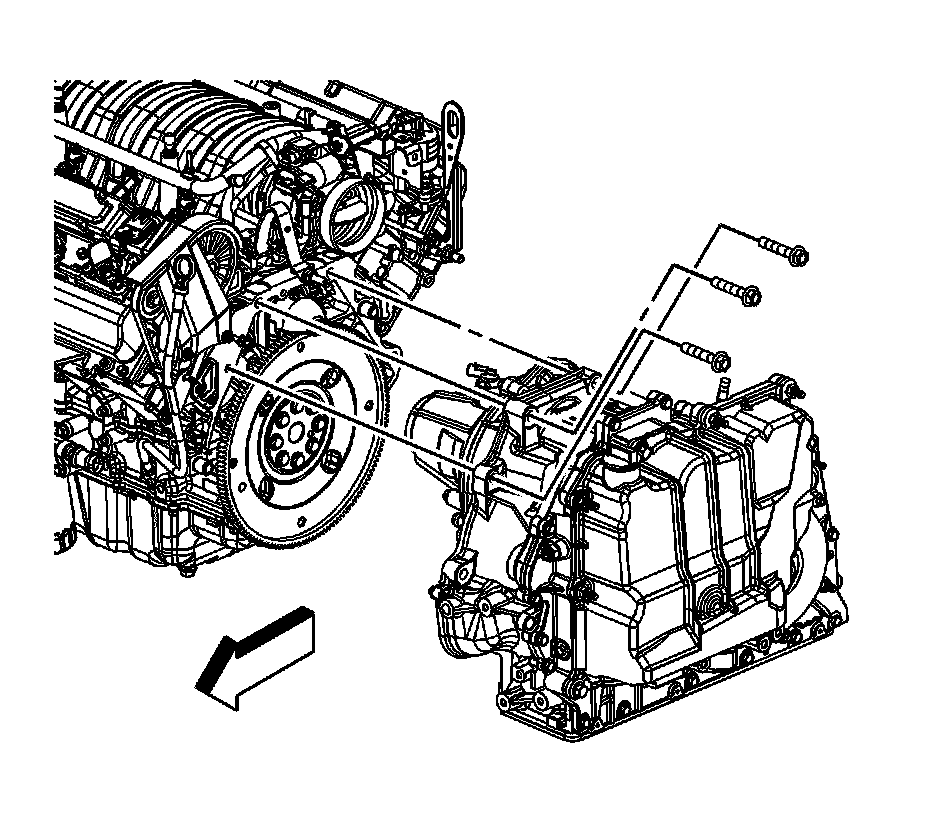 5. Carefully position and install the engine to the supported frame and transaxle, aligning the engine dowel pins to the transaxle.