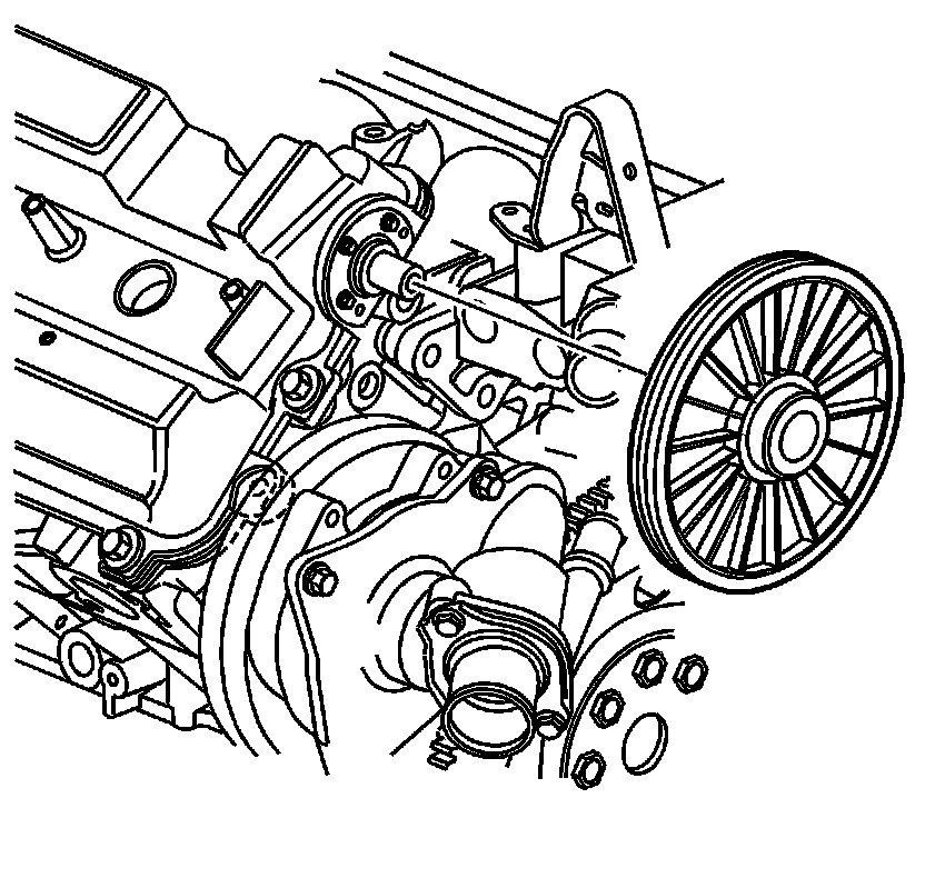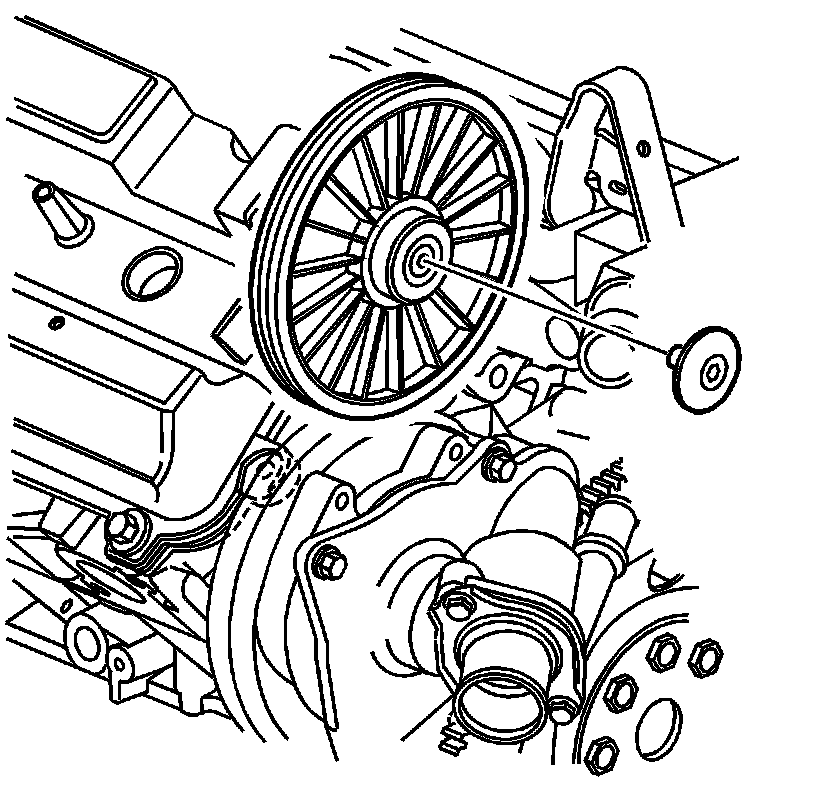 1. Remove the water pump drive belt tensioner shield. Refer to Fuel Injector Sight Shield Replacement (Fuel Injector Sight Shield Replacement).