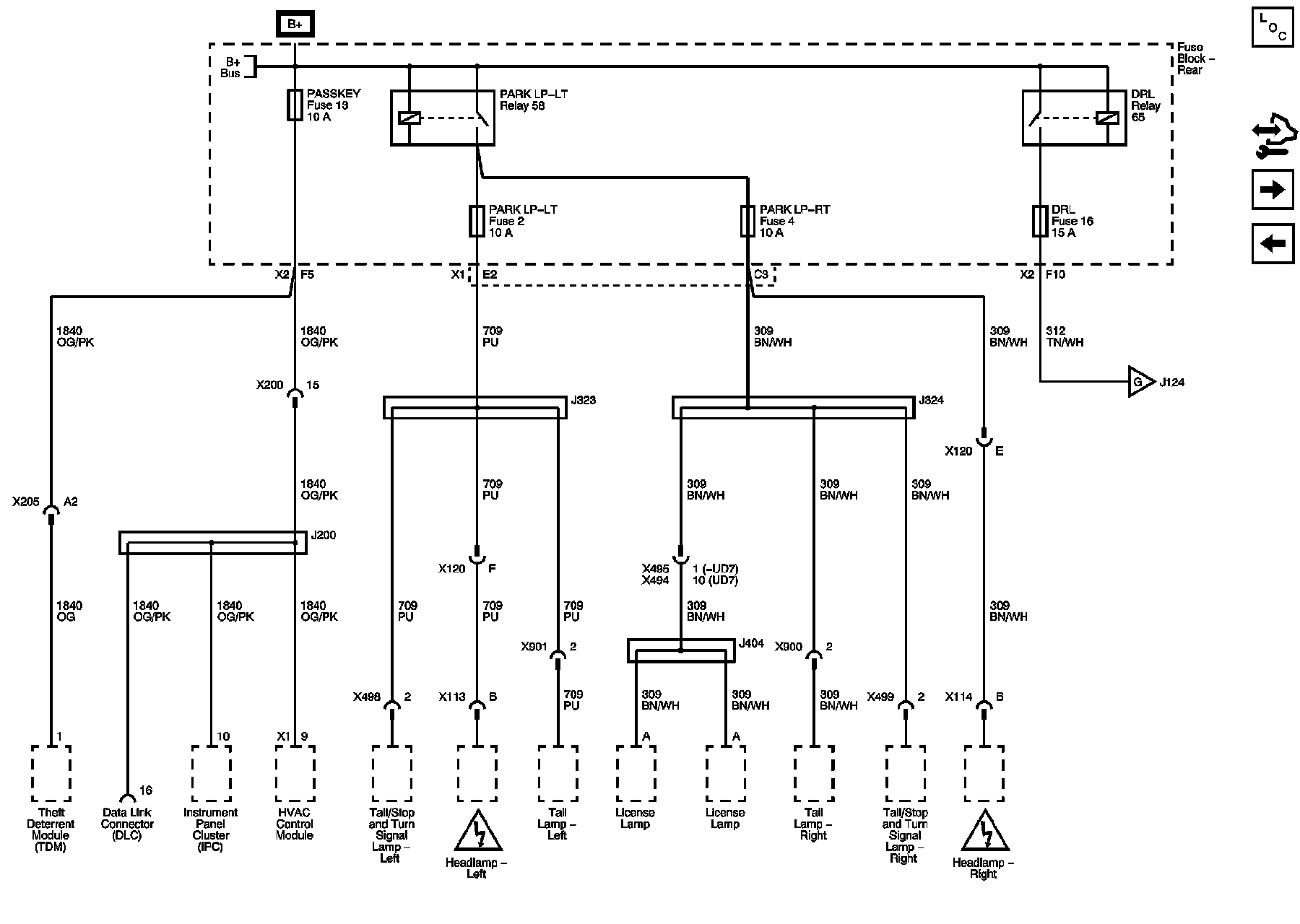 PRK LAMP, DRL Relays, IP HARN MDL, LT PRK LAMP, RT PRK LAMP, DRL Fuses