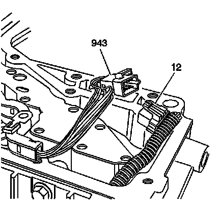 7. Lift the lower channel plate, control valve body and accumulator assembly (903) and the lower control valve body wire harness extension (943) from the case as a single unit.