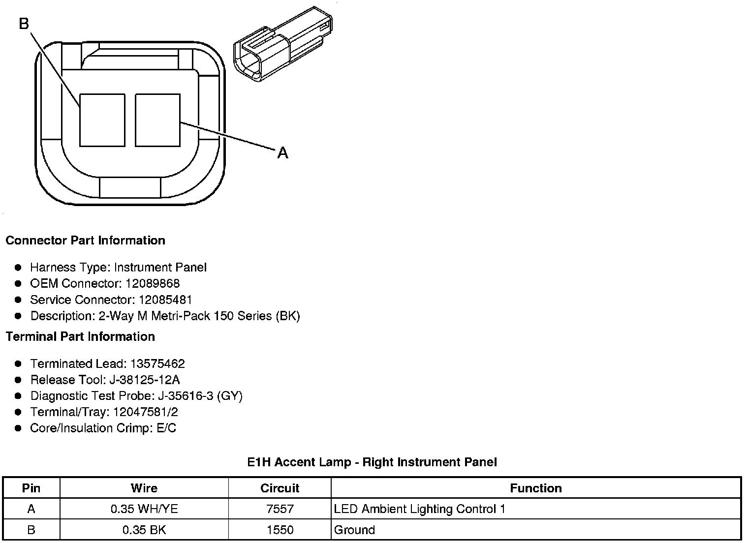 E1H Accent Lamp - Right Instrument Panel