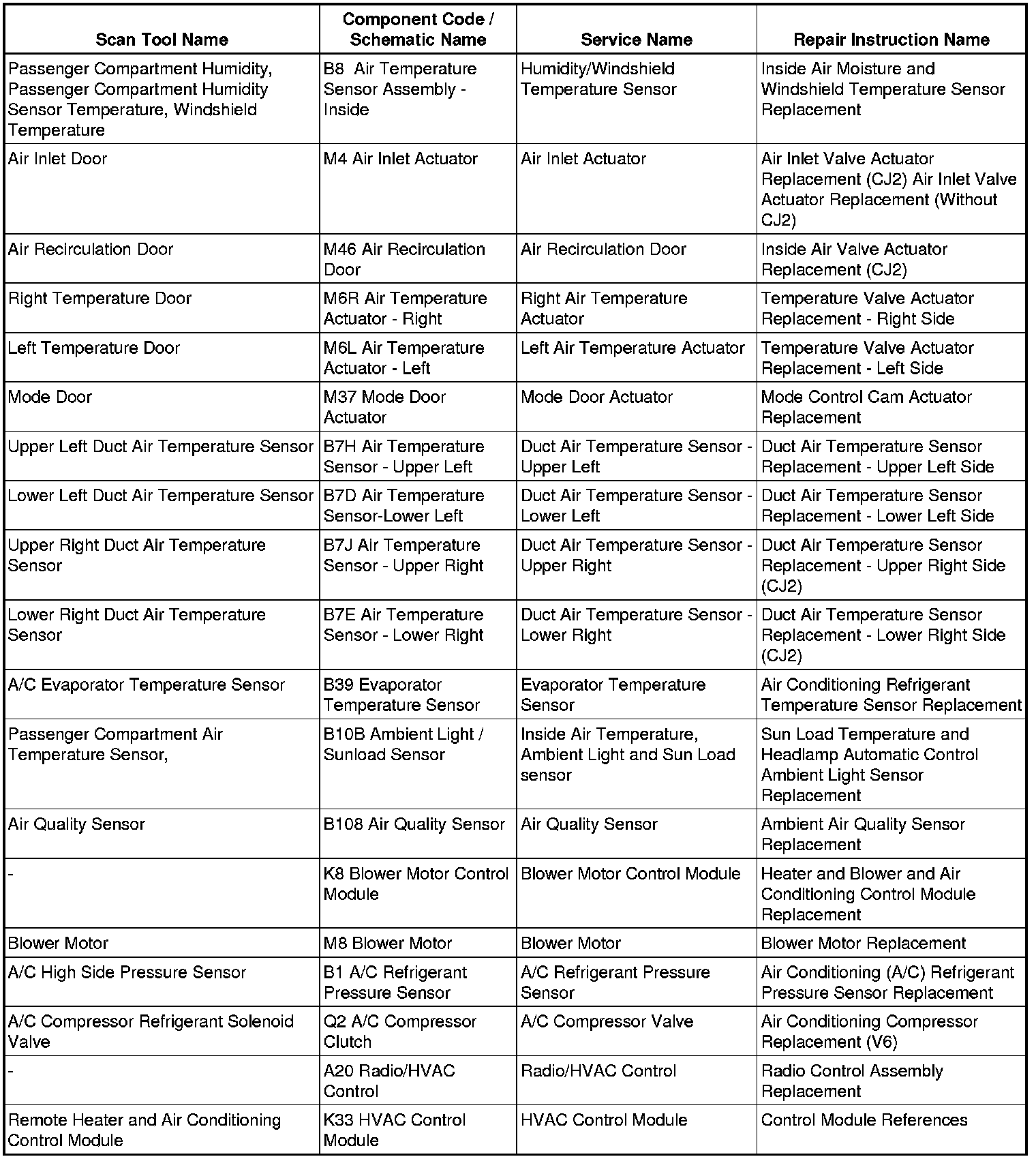HVAC Component Replacement Reference