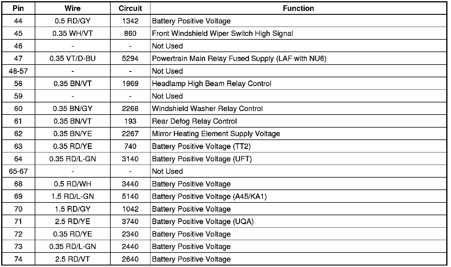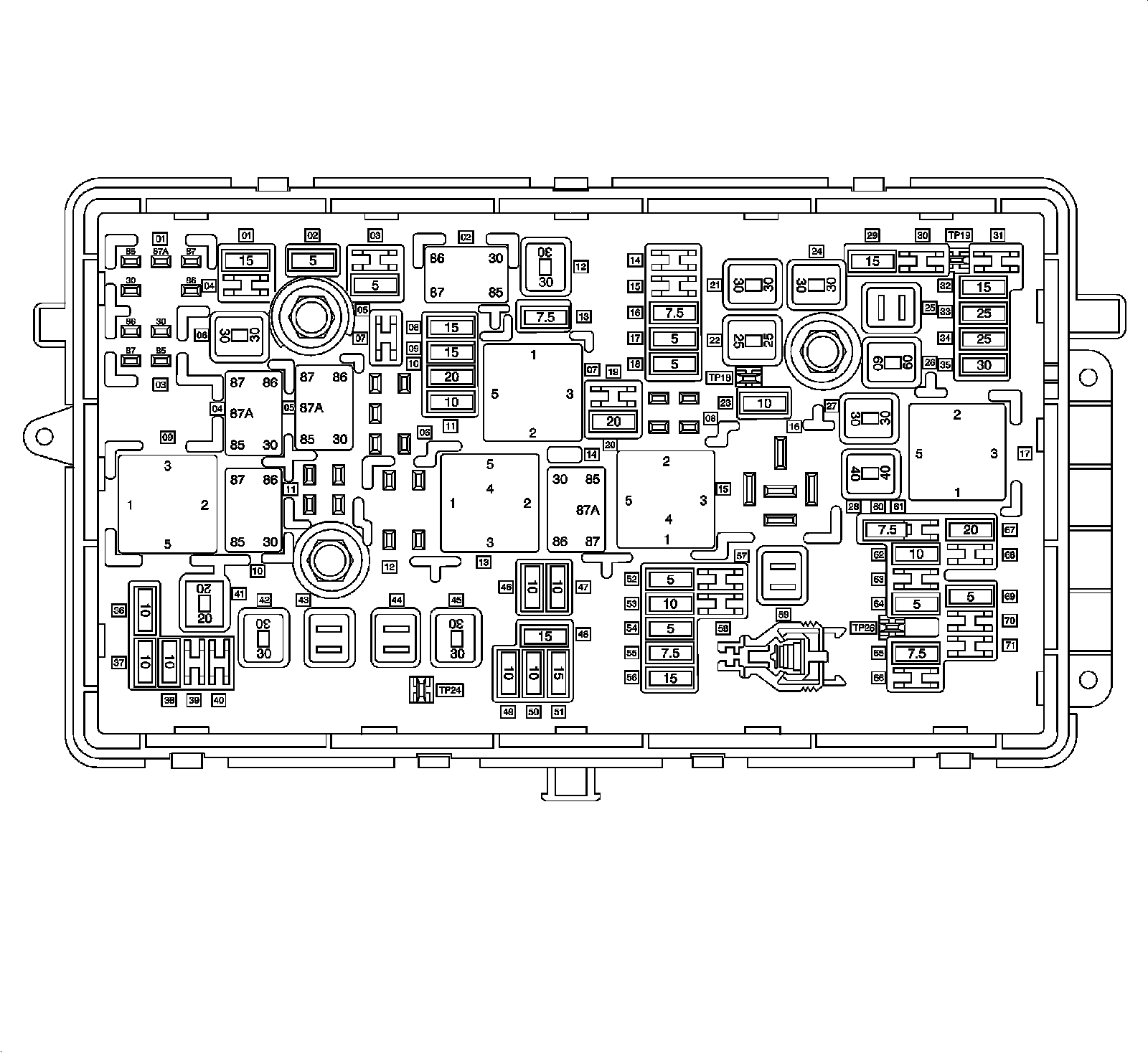 X50A Fuse Block - Underhood - Bottom View