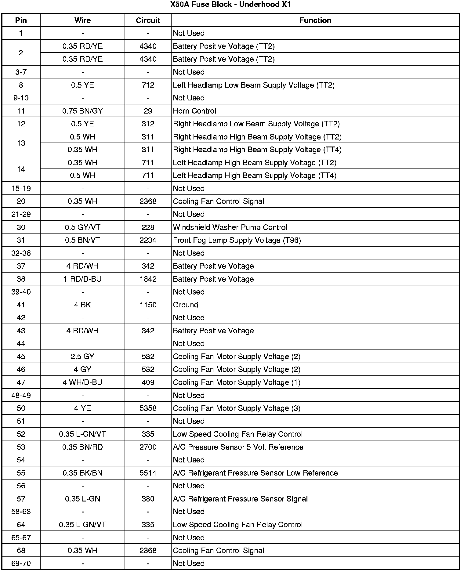 X50A Fuse Block - Underhood X1